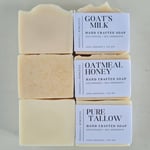 A simple bundle of our three most loved soaps, chosen for their gentleness, and suitability for everyday use. This trio includes our Pure Tallow Soap, Goat's Milk Soap, and Oatmeal Honey Soap - all fragrance-free and made with our locally sourced, grass-fed tallow.
